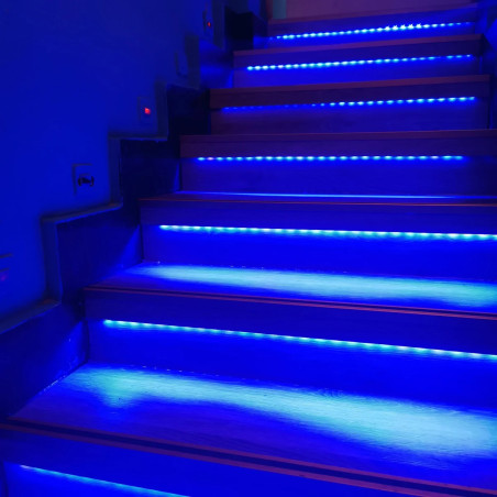 Led-Streifen von 24V selbstklebend, 5 Meter, 14,4W pro Meter. RGB-Farbe von 60 LEDs pro Meter, IP20, für den Innenbereich.