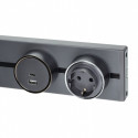 Steckdose Typ F (Schuko) zur Installation auf einer Linear-Schiene, grau lackiert. Die Installation ist sehr einfach: einfach auf die Schiene setzen und 90° drehen, um sie zu befestigen. Sie kann leicht auf den Schienen platziert und entfernt werden, sodass sie schnell dort eingesetzt werden kann, wo sie benötigt wird. Die Basis verfügt über eine blaue LED für einfache Auffindbarkeit im Dunkeln.