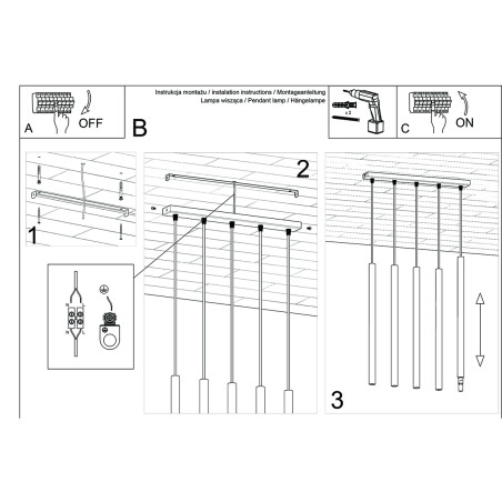 Die PASTELO-Serie bietet eine große Auswahl an Beleuchtung. Es gibt Wandleuchten sowie Hängeleuchten mit einer, drei oder fünf Lichtquellen in verschiedenen Anordnungen - parallel, gleich lang oder auf einem Kreis mit unregelmäßiger Länge. Dank dieser Vielfalt finden Sie sicherlich genau das, was Sie brauchen.