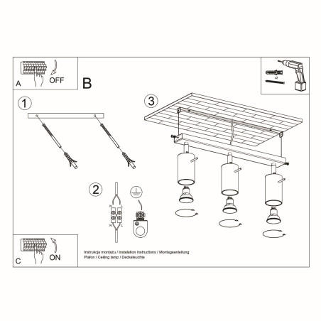 Erhellen Sie Ihren Innenraum mit der Deckenleuchte mit 3 Lampenschirmen, die Sie in jedem Raum installieren können. Die verstellbaren Arme geben Ihnen große Freiheit bei der Gestaltung der Atmosphäre im Raum - von warmer Dämmerung bis hin zum vollen Licht, je nach Einstellung der Lampenschirme. Die Deckenleuchte wurde mit Ihrem Komfort im Hinterkopf entworfen - sehen Sie selbst, wie sie sich um Ihr Wohlbefinden kümmert.