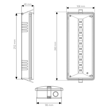 2W LED-Notlicht mit einer Reichweite von bis zu 3 Stunden. Es ermöglicht seine Installation sowohl auf der Oberfläche und versenkt, dank der Heftklammern, die es enthält.