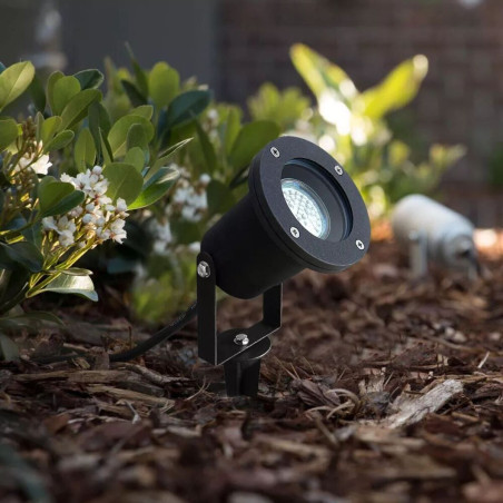 Der LED-Strahler für den Außenbereich aus schwarzem Aluminium ist dank seiner Schutzart IP65 (Schutz gegen Staub und Strahlwasser) ein perfektes Produkt für die Beleuchtung von Außenbereichen. Dank seiner schwenkbaren Struktur lässt sich der Lichtpunkt in die gewünschte Richtung ausrichten, was ihn zu einer idealen Lichtquelle für den Einsatz in Gärten, Terrassen, Blumentöpfen, aber auch in größeren Räumen wie Parks, Wegen oder Innenhöfen macht.