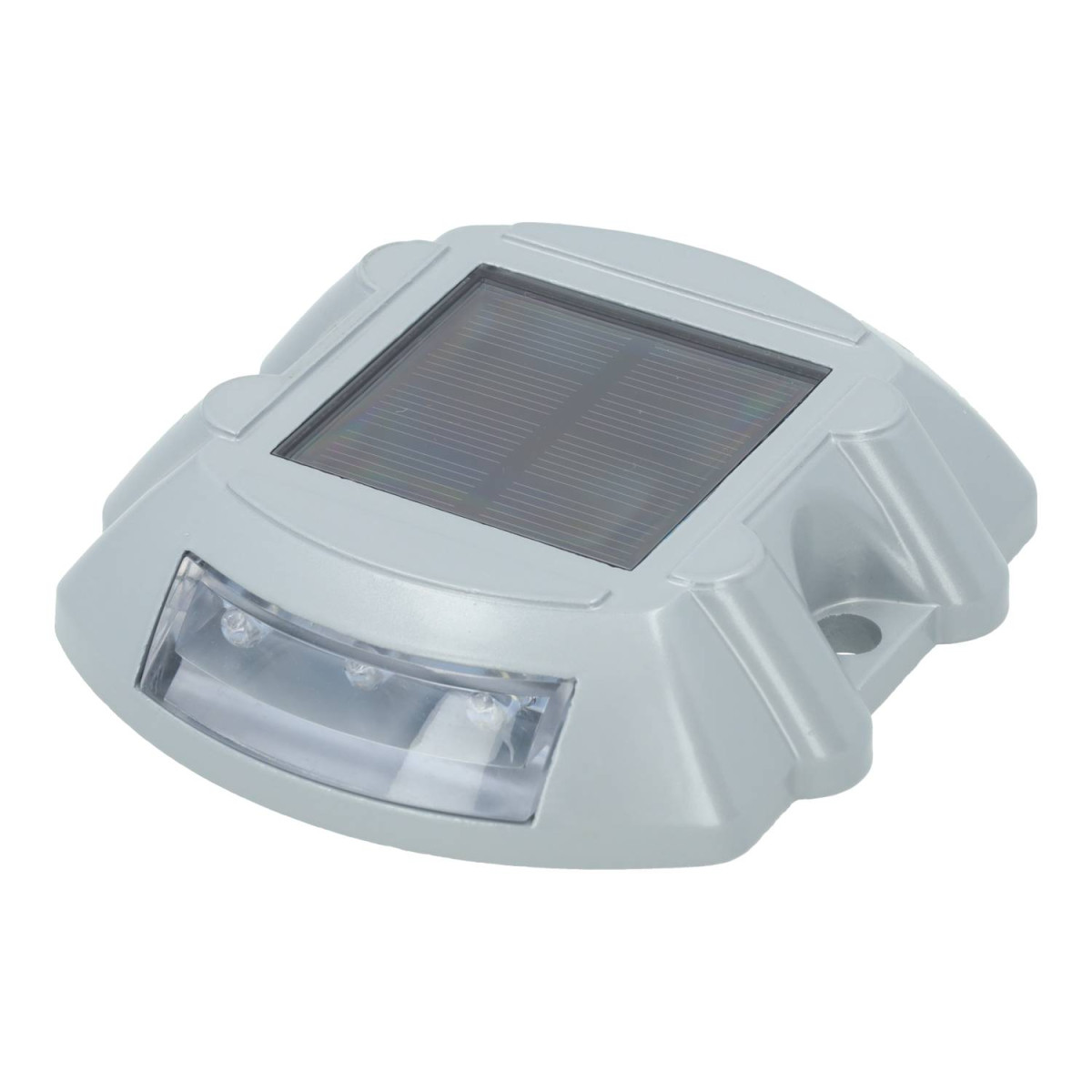 The 2x3 LED Flash solar road beacon incorporates 6 high efficiency LEDs with automatic flashing to improve safety and visibility on roads, streets, roundabouts and outdoor spaces. Made of durable aluminium, this beacon combines advanced solar technology with a functional design featuring ultra-bright SMD LEDs arranged in 2 rows of 3 LEDs, with an automatic flashing function of 90 times per minute. Equipped with a 2V solar panel and rechargeable battery, this beacon automatically activates at dusk, ensuring clear and effective signalling all night long.