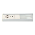 Regleta led de 9W con interruptor frontal, diseñada con cuerpo de aluminio en forma de esquina y difusor de PVC opaco. Es una opción eficiente y duradera para iluminar espacios bajo muebles, como por ejemplo encimeras, escritorios, bancos de trabajo, etc. Esta barra lineal cuenta con una base de enchufe tipo F (Schuko) y una toma de USB doble (A + C), ofreciendo una gran versatilidad en cualquier situación.