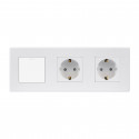 Marco embellecedor de policarbonato para tres mecanismos, disponible en dos colores: blanco o negro. Ideal para crear un acabado moderno y minimalista en cualquier instalación interior. Se puede combinar con cualquier mecanismo de la serie cristal.