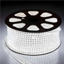 Este tipo de tira LED autorectificada de 220V se suministra en tiras de longitud múltiplo de 1m con 14.4W/m (el rollo completo tiene 100 m). Debido a su grado de protección IP65 (protección total frente al polvo y ante chorros de agua) su instalación se puede llevar a cabo en espacios interiores y exteriores, así como la instalación en perfil de aluminio. Es un producto adecuado para uso doméstico (techos, escaleras o mobiliario en general) y comercial (tiendas, restaurantes etc). Incorpora una banda autoadhesiva en su parte posterior, lo que permite fijarla en superficie de forma rápida y sencilla. También es posible fijarla usando nuestras grapas de silicona para tira LED de 220V. Dispone de una gran potencia lumínica y alto brillo. La luminosidad es regulable utilizando un regulador TRIAC compatible con LED.