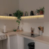 Su instalación es muy sencilla. En primer lugar, si no se va a montar el tramo completo de 5 metros, se debe cortar o empalmar la tira para obtener el tramo de la longitud deseada. Se debe tener en cuenta que la tira se puede cortar cada 5 cm (3 leds) por las zonas de corte señaladas y no se pueden empalmar más de 5 metros lineales (o de lo contrario se producirá una pérdida lumínica por caída de tensión).