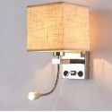 Applique en aluminium avec un abat-jour en tissu avec un culot pour une ampoule à filetage E27. Il dispose également d'un point lumineux LED flexible de 1W en lumière chaude.