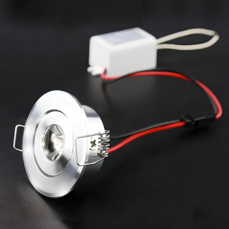 Downlight LED rond en aluminium avec une finition argentée. Il s'agit de l'un des produits les plus utilisés dans le domaine de l'éclairage, car il est idéal pour l'installation dans les plafonds, qu'ils aient peu ou beaucoup d'espace. Grâce à son angle de dispersion de la lumière de 45° et à sa structure inclinable, il permet d'orienter le point lumineux dans la direction souhaitée, ce qui en fait une source lumineuse idéale pour les véhicules, les bateaux, les maquettes, les terrariums et tout espace où la tension est de 12V ou 24V en courant continu.