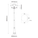 Lampe de jardin solaire, 260cm de haut, trois têtes, en corps d'aluminium, avec 18W de puissance.