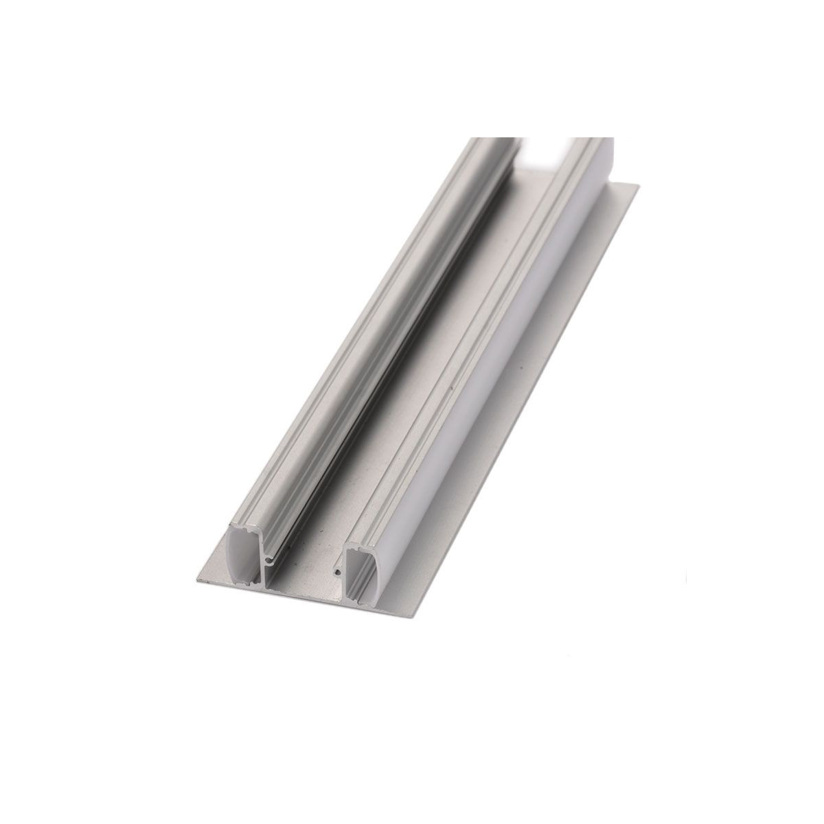 Profilé rectangulaire en aluminium pour bandes LED, avec diffuseur opale. Idéal pour protéger et cacher les bandes de LED jusqu'à 23 mm de large.