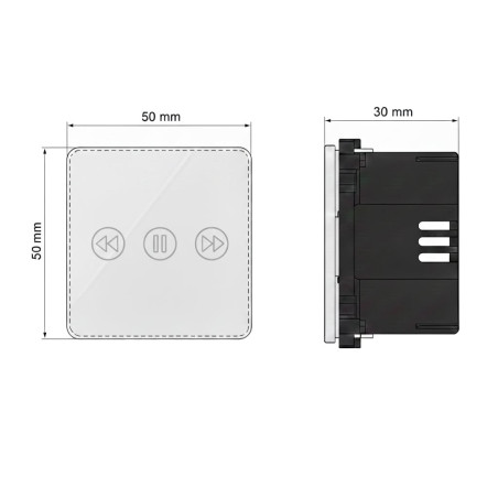 Interrupteur tactile pour la commande des stores, disponible en blanc ou en noir.