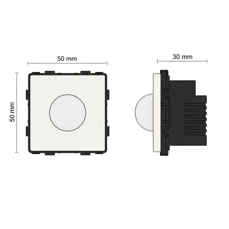 Dispositif permettant d'automatiser l'allumage d'une installation LED 220V avec une charge maximale de 60W. Ce mécanisme est activé par la détection d'un mouvement dans l'obscurité et s'éteint après 50 secondes sans avoir détecté de présence. La distance de détection est de 4 à 8 mètres, avec un angle de 90 degrés. En présence de lumière naturelle, le détecteur reste inactif.