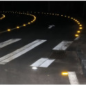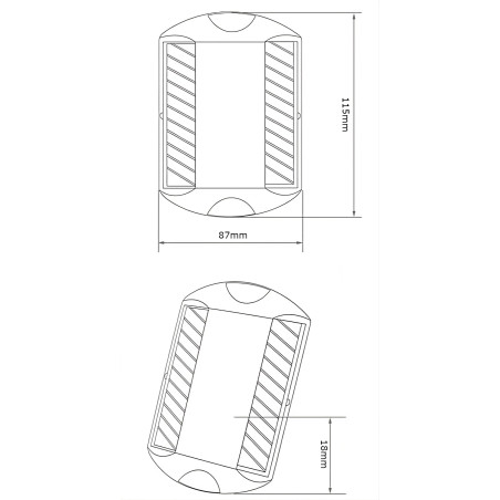 Faro stradale (chiamato anche occhio di gatto) con bande riflettenti su entrambi i lati e una banda fosforescente in cima.