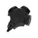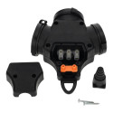 Spina femmina tipo F (schuko). Con coperchio protettivo in gomma che lo protegge dalla penetrazione di acqua e / o polvere.