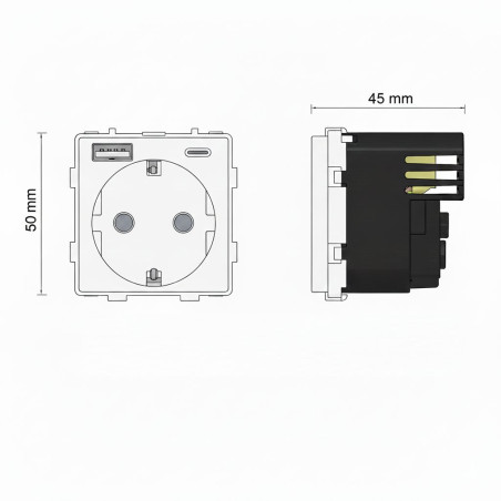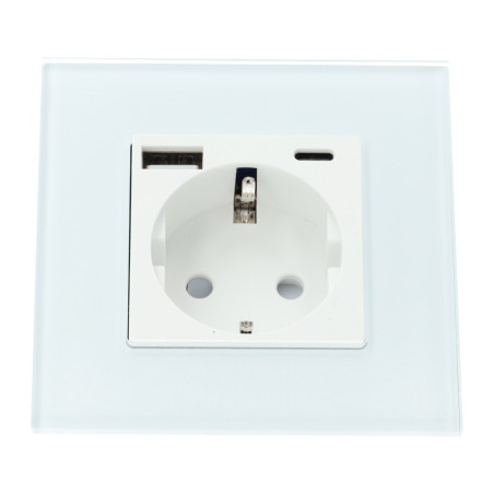 Presa da incasso tipo F (Schuko), disponibile in due diversi colori: bianco o nero. È una soluzione moderna e pratica per qualsiasi casa o ufficio. Con un design che combina una presa Schuko standard da 16A e due porte USB di ricarica rapida, consente di ricaricare i dispositivi elettronici direttamente senza bisogno di adattatori aggiuntivi. Ideale per migliorare la funzionalità e risparmiare spazio nei luoghi in cui la tecnologia è in costante utilizzo. Questa presa è perfetta per ricaricare telefoni cellulari, tablet e altri dispositivi elettronici mentre si continua a utilizzare la presa convenzionale per gli elettrodomestici. Realizzata con materiali di alta qualità, garantisce sicurezza e durata in qualsiasi tipo di installazione.