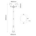 Lampada da giardino solare, alta 260 cm, due teste, realizzata in corpo in alluminio, con 12W di potenza.