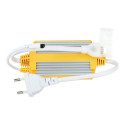 Kit di controller per strisce LED RGB da 220V con spina rapida. Supporta fino a 150 metri di strisce LED RGB da 220V - 10W/m. Permette di gestire e controllare facilmente le strisce grazie al telecomando a infrarossi. Con questo controller è possibile regolare la luminosità, l'intensità, il colore, la velocità e la modalità di funzionamento. Si collega direttamente alla rete elettrica senza bisogno di alcun dispositivo aggiuntivo.