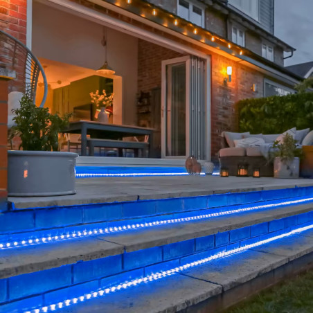 Tira Led 220V, 12 Watios metro, IP65 exterior, alto brillo, 120 led por metro, luz disponible en rojo, verde y azul. Gran sensación luminosa y mejor distribución lumínica.