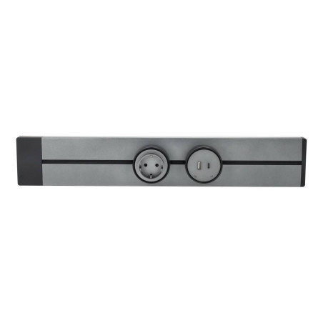 Calha para montagem à superfície, cor cinzenta metalizada. Permite o fácil acoplamento e desacoplamento de tomadas de todos os tipos, bem como a deslocação das tomadas ao longo de todo o comprimento da calha. Por isso, é ideal para locais onde é necessário variar periodicamente o número e/ou o tipo de tomadas disponíveis.