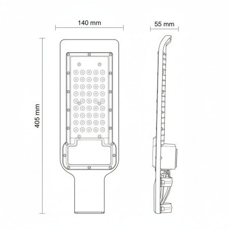Rua Led farola 50W, 50 led x 1W, ajustável, luz branca, 5000 lumens