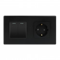 Moldura de policarbonato para 2 mecanismos, disponível em branco ou preto.