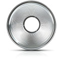 Refletor de alumínio 60º compatível com todos os modelos de capô SMD MasterLED. Permite reduzir o ângulo do feixe de luz quando é necessário concentrar a luz em áreas específicas.