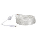 Rolo de 5 metros de fita LED pronta a ligar. O seu grau de proteção IP65 torna-a adequada tanto para instalação em interiores como em exteriores. O seu tom de luz quente torna-a ideal para a decoração de árvores, arbustos, varandas, floreiras, etc.