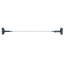 Pode ser utilizado com o nosso perfil rectangular 66x35x2000mm, basta aparafusar as duas guarnições ao tecto, passar o cabo de aço com a sua rolha, e aparafusar o pino do cabo ao perfil. Este contém um mecanismo que permite o ajuste da altura.