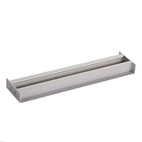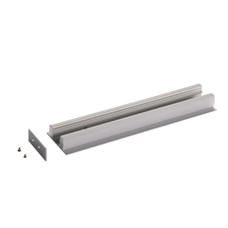 Perfil rectangular de alumínio para tiras de LED, com difusor opalino. Ideal para proteger e esconder tiras de LED até 23 mm de largura.